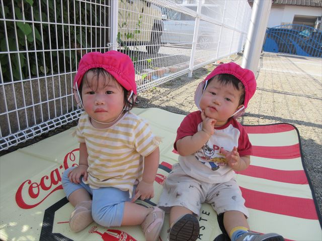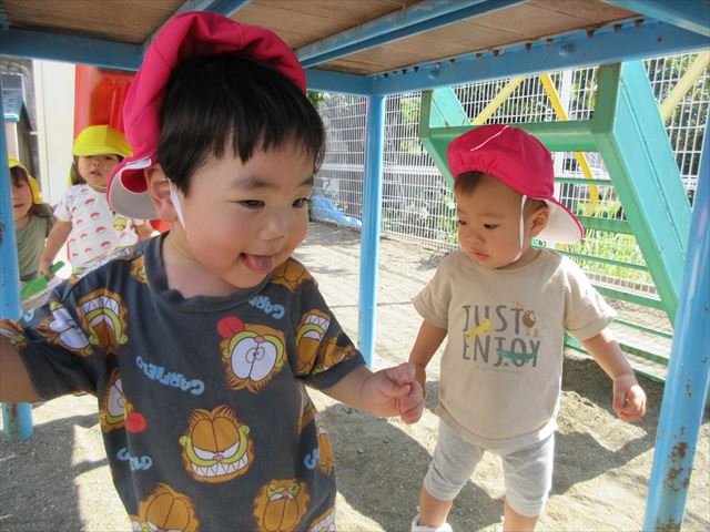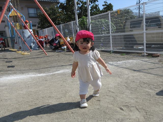 歩けるお友達は靴を履いて園庭探索をしてみました♪お花を眺めたり、体を動かしたりと思い思いに楽しんでいました❣