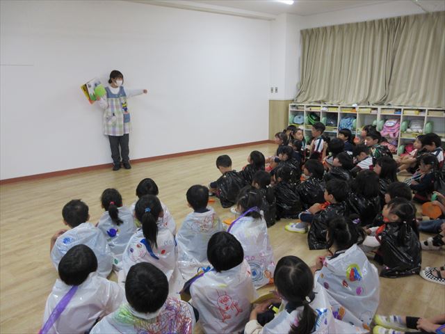 最初はみんなで絵本を見たり、〇×クイズをしたりしました!