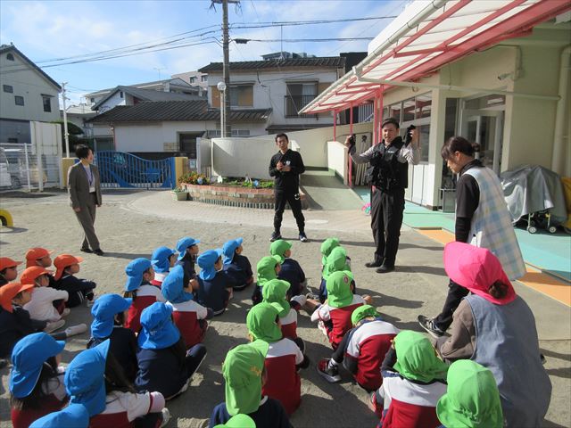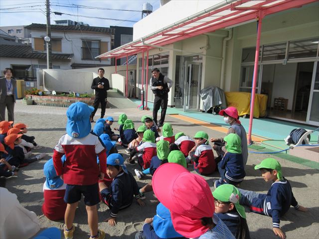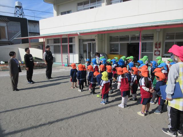 無事不審者確保後は園庭に集まり、