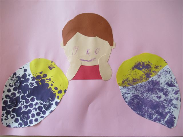 折り紙をちぎってのりで貼り付けて、さつまいもを作りました!