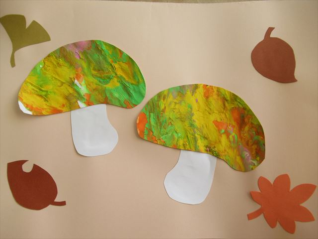 フィンガーペイントで絵の具の感触を楽しみ、カラフルなきのこを作りました🍄