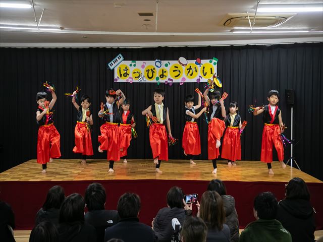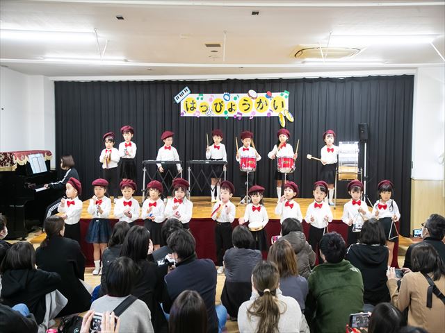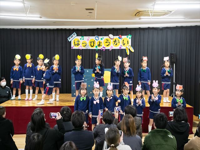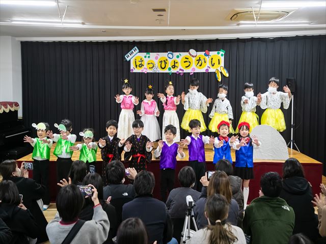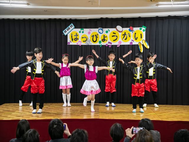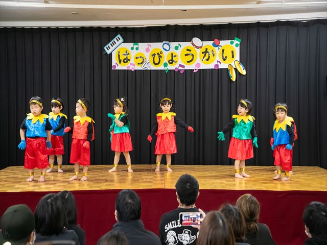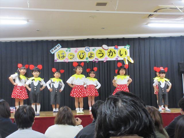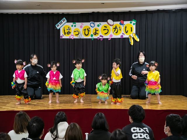 初めての発表会。ステージの上で気ままに立ったり座ったり☺