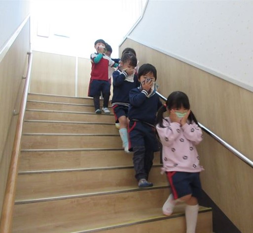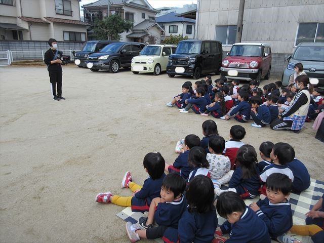 園長先生からは、12月は空気が乾燥していて火災が起きやすくなっていることや、自分の命を守る為に訓練をすること、お返事の大切さについてのお話を聞きました。