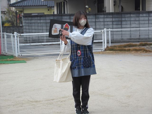 担当からは、ストーブなどの火が使われている物の近くに燃えやすいものを置かないことや、「お・は・し・も」のお約束の大切さについて教わりました。