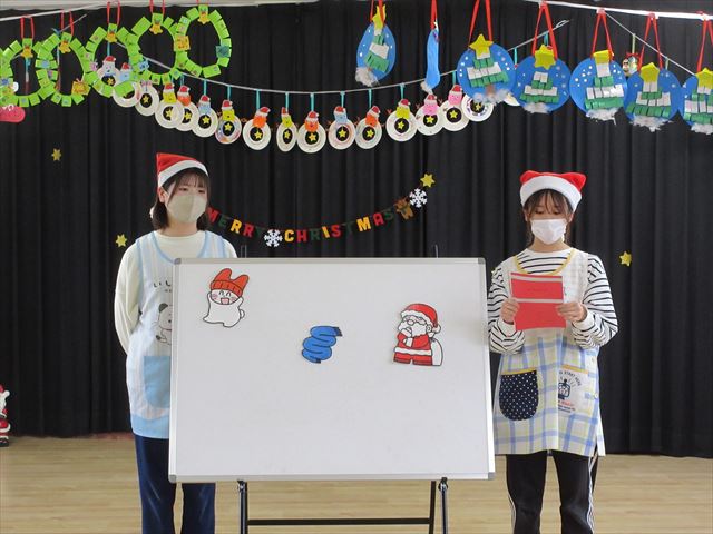 保育士の出し物ではクリスマスの由来についてや、パネルシアター「だれのプレゼント?」を見ました!
