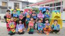 凧あげでは自分で選んだ色の凧にシールを