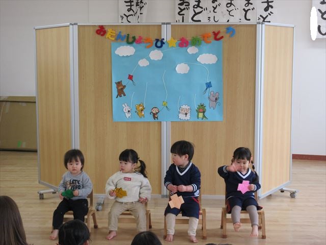 その後は、主任の先生からの冠のプレゼントやお友だちからのお歌のプレゼントをもらい嬉しそうでした(*^-^*)
