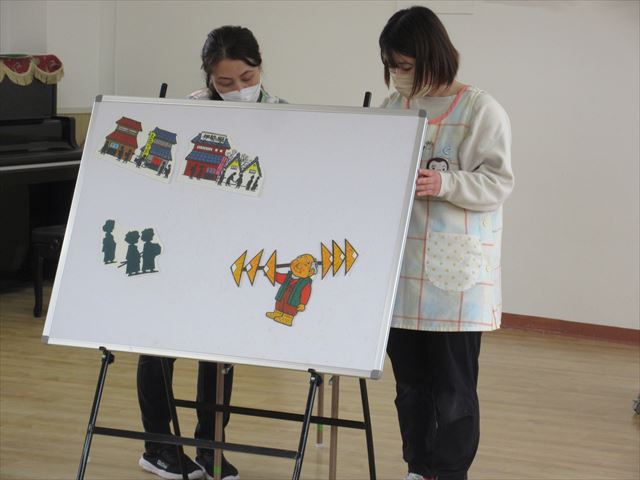 沢山お祝いしてもらった後は、保育士の出し物『かさ地蔵』のパネルシアター!!
