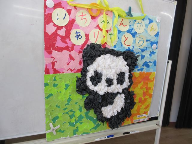 高砂クラブのおじいちゃん・おばあちゃんと一緒にぱんだのタペストリーを作りました。