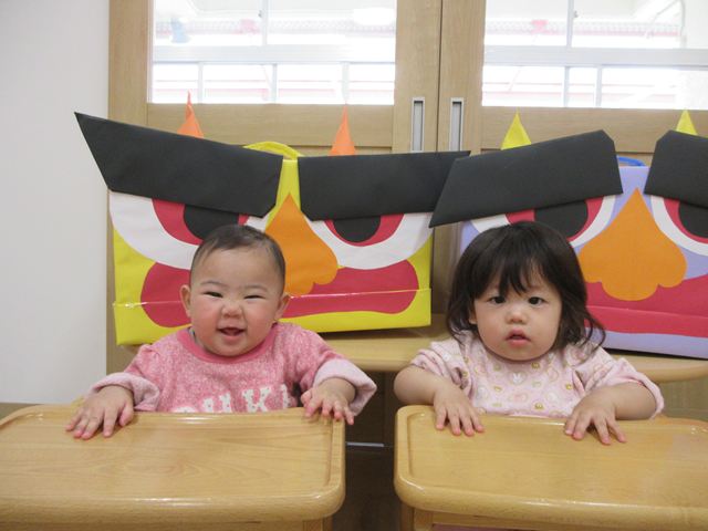初めての鬼を見て涙が出てしまうお友だちもいれば、興味津々に近づいていくお友だちもいて、色んな表情を見せてくれました!