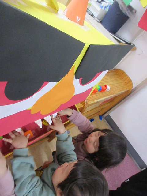 初めての鬼を見て涙が出てしまうお友だちもいれば、興味津々に近づいていくお友だちもいて、色んな表情を見せてくれました!