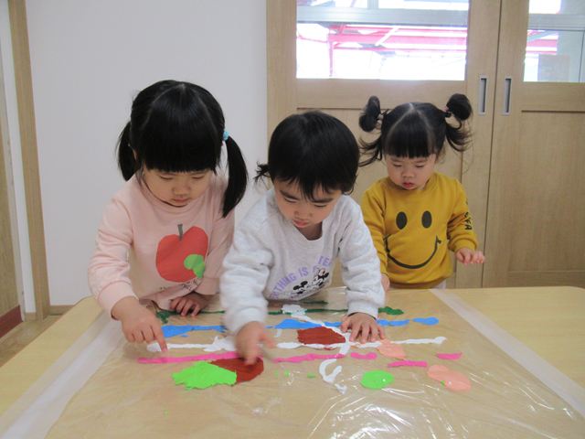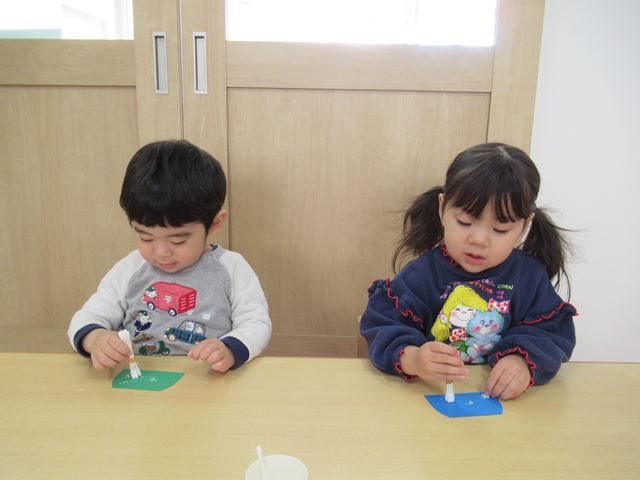 春雨を1本1本つまむ子、手いっぱいに掴んで豪快に遊ぶ子、好きな色だけ集める子…と