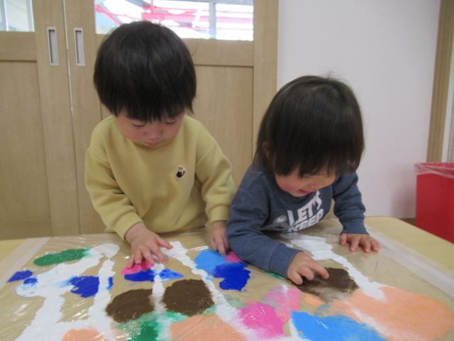 触ってみた後に指を確認して”あれ?指に付いてない?汚れてない?”と不思議そうな子どもたち。