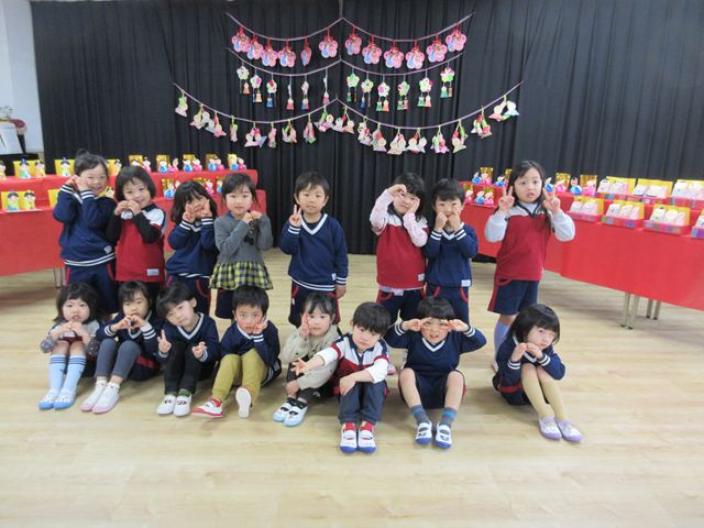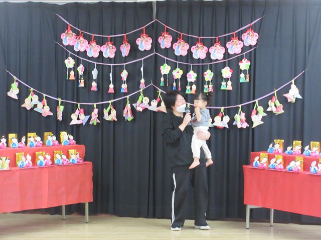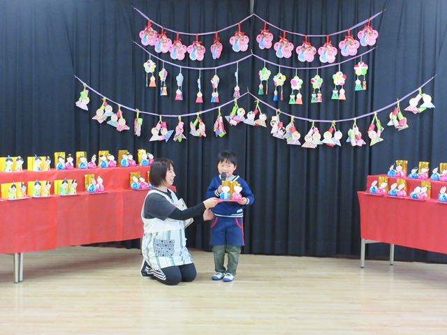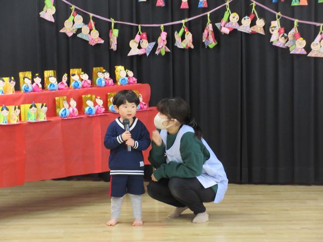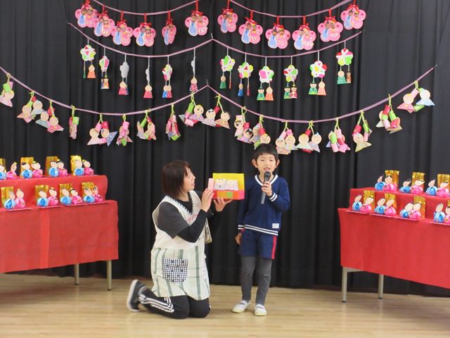 まず最初に各クラスの代表のお友だちに、ひなまつり製作の紹介をしてもらいました❣