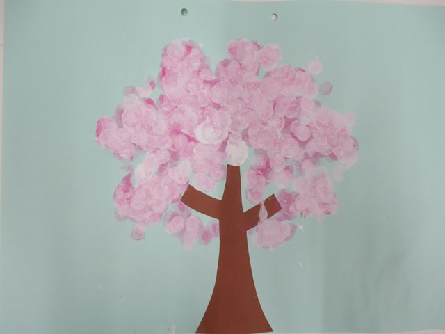 タンポスタンプで桜の木を作りました🌸