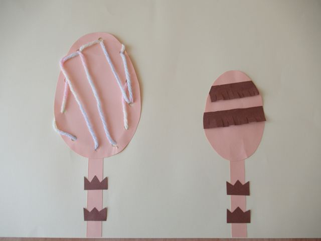毛糸通しと、ハサミを使ってつくしの模様付けをしました!